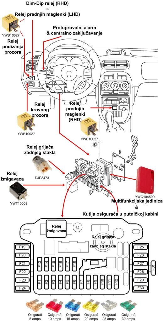 Rover 200 (1995-1999): Osigurači, releji, kompjuteri